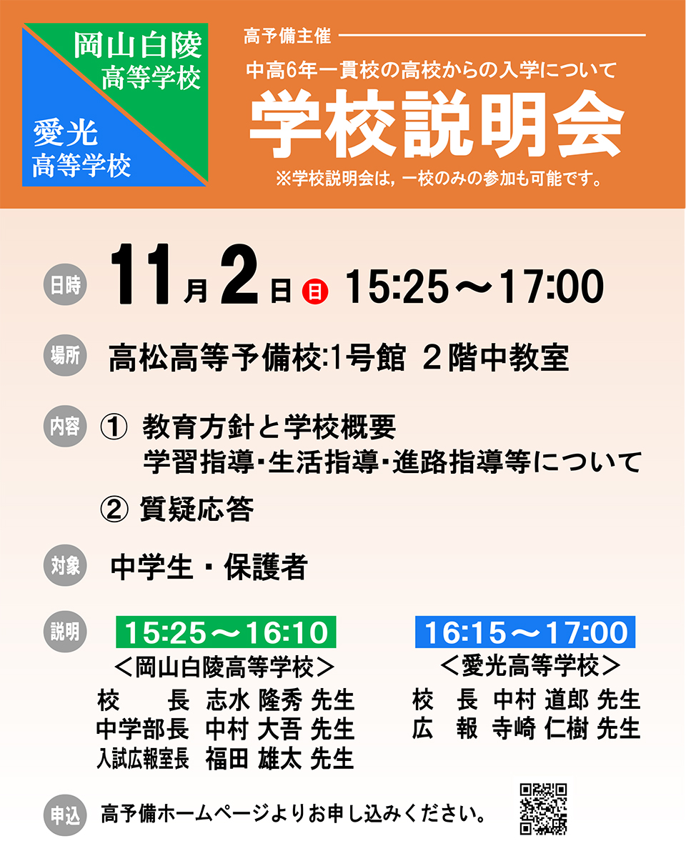 学校説明会「岡山白陵・愛光高等学校」