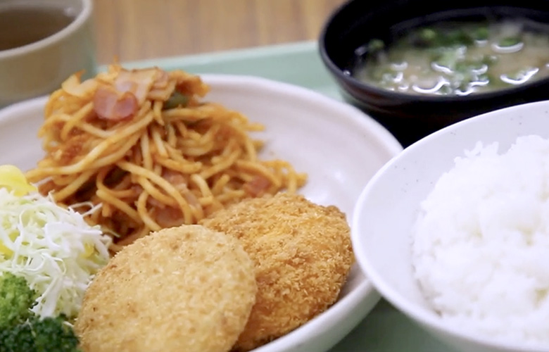高予備では、寮母・寮職員が朝食と夕食を全寮共通メニューで調理しています(ただし、日曜・祝日の朝食はパン、夕食は弁当)。メニューについては、生徒の感想や意見を聴きながら、家庭料理と同様、温かいものが食べられるように配慮しており、「高予備の食事はおいしくて満足している」と好評を得ています。また、毎日食事を摂っているかどうかは本人任せではなく、寮職員が必ず確認し、健康管理にも気を配っています。