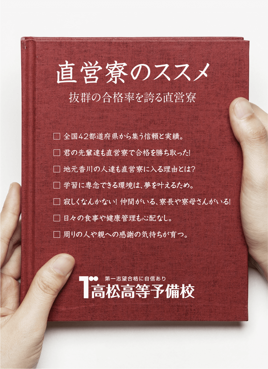 高松市内5カ所(2025年度)にある高予備の直営寮は、「通うための寮」ではなく、「受験のための寮」です。“受験道場”と呼ばれて43年、「継続は力なり」を実践できる寮として、現在では42都道府県から生徒たちが集い学習に励んでいます。